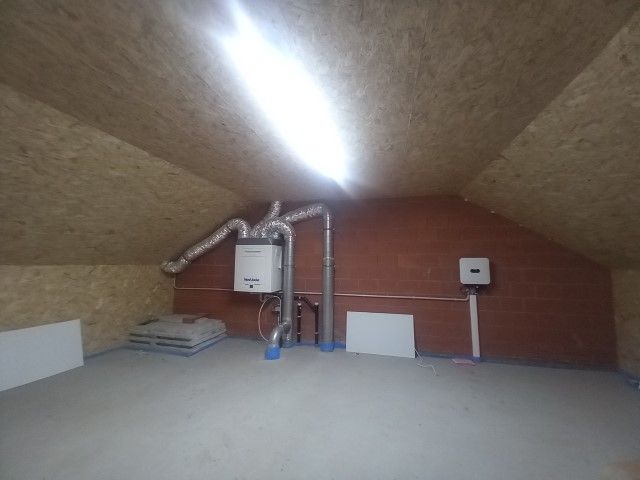 Inkom, keuken, badkamer (dubbele lavabo, inloopdouche), ruime living/eetkamer, 2 x WC (afz.), 3 à 4 slaapkamers, afgewerkte zolder, berging/wasplaats met inloopdouche.