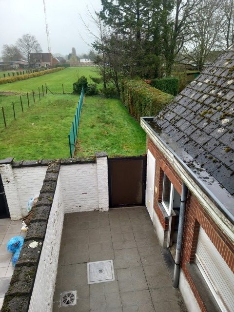 Inkom, keuken, badkamer, living/eetkamer, 2 slaapkamers, berging, kelder, zolder, terras, tuin.