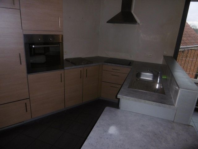 Inkom, keuken, badkamer, ruime living, 2 slpk, terras, staanplaats.